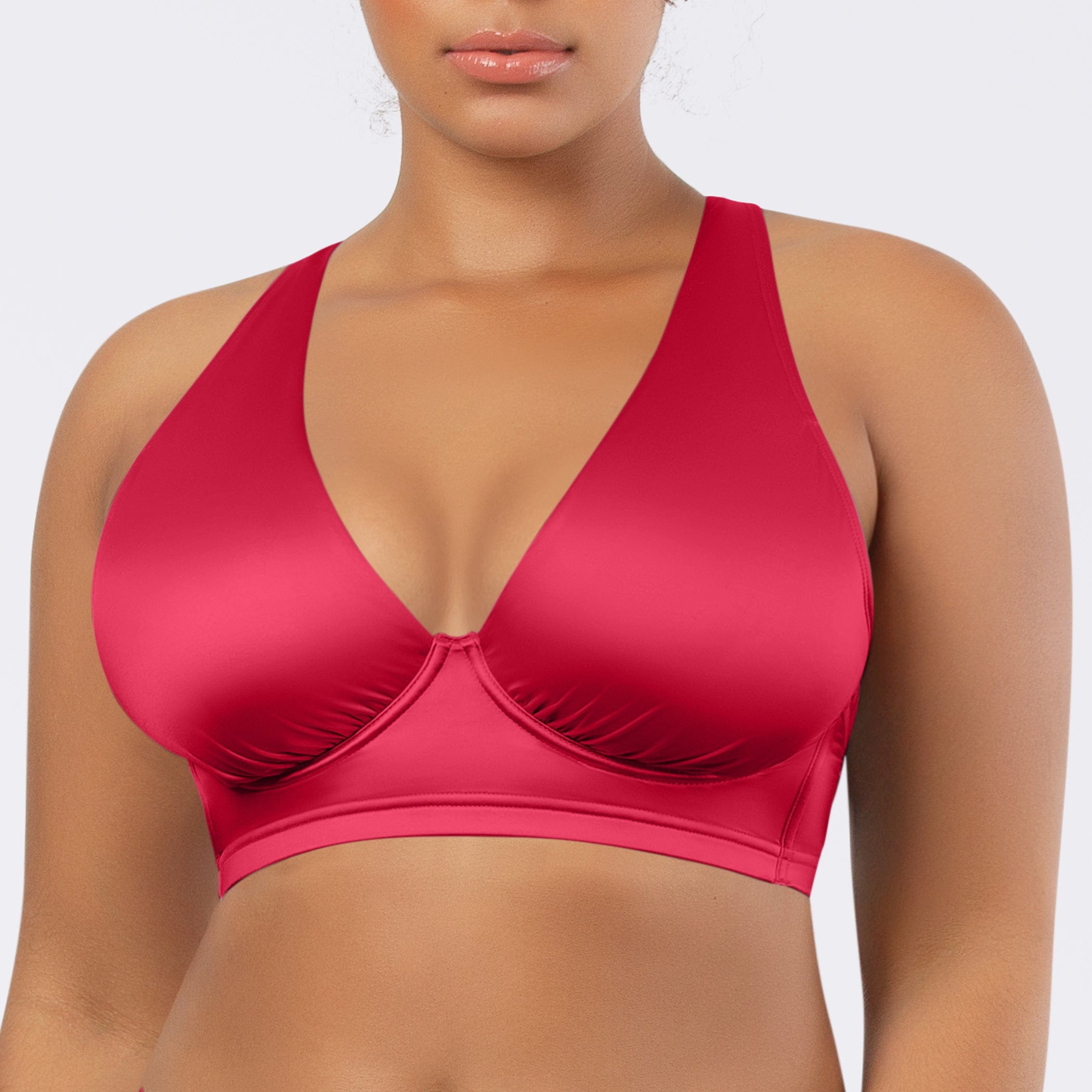 PARFAIT Rita S8142 Longline Bikini Top with Cross Back Straps and Shirred Contour Cups - Cherry